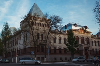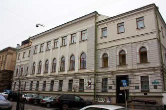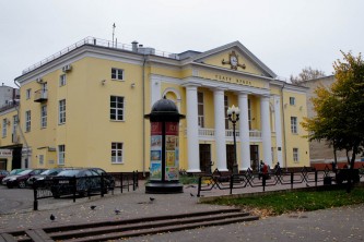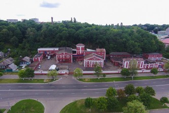Пешком от Витебской ратуши в сторону витебских пирамид - по правую руку перед фасадом здания.